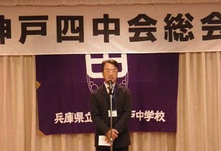 四中同窓会ができたのはかなり昔ですが、四中会として実際の活動は昭和53年からで、昭和59年に第1回総会をポートピアホテルで行い、今日まで30年以上続けてきました。しかし、最近は総会欠席者が多くなってきました。返信はがきには、「寄る年波には勝てず」「身体の具合が悪い」といった近況報告が並びます。そういう中でもがんばってきたのですが、会員の平均年齢も84.5歳となり、また役員達も何らかの事情を持つ状況であり、先日会合を開いて意見を交わしました。そして、もうこのあたりが限度だという結論に達し、このたびの四中会総会を最後にすることとして、涙が出るほどつらい気持ちで会合を終えました。本日は最後の四中会総会となります。四中会自体は存続しますが、大きな活動はこれで終わりです。四中は本当にすばらしい学校だったと私は思います。その後継である星陵高校も勉学、スポーツともすばらしく、先生方もすばらしい。入学志願者も多数と聞いております。これは我々四中生が築いた「県立一中、二中、三中に負けずにがんばろう!」という気持ち、新しい学校ゆえに良いものを後輩に校風として残そうという気持ちが現在につながっていったからだと思います。